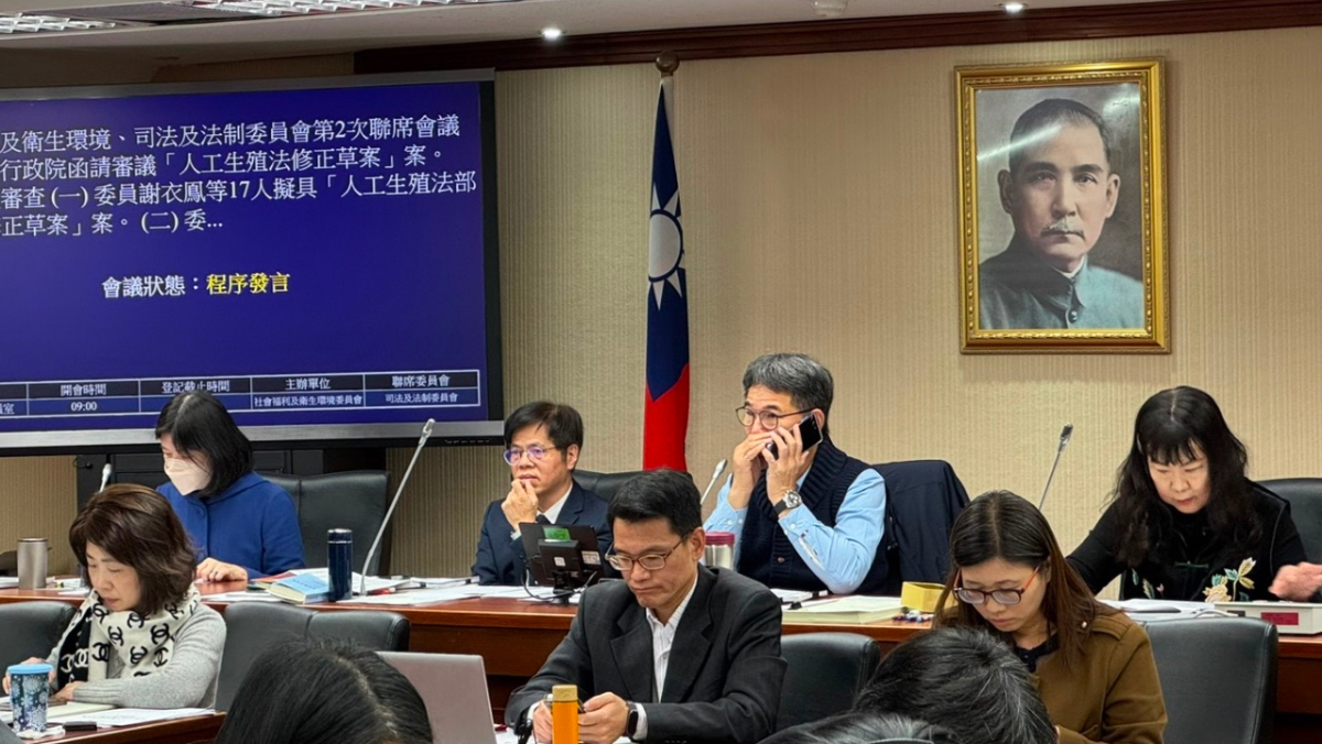 立法院衛環委員會今(8日)審查《人工生殖法》修正草案,代理孕母議題成為焦點,多名綠委質疑若倉促打包表決,恐衝擊女性權益,擔心逐條審查恐淪「過水」。民進黨召委劉建國當場回應,衛環委員會在立法院八樓,水要淹過機會不大,「水很難過啦」,試圖緩和緊張氣氛。