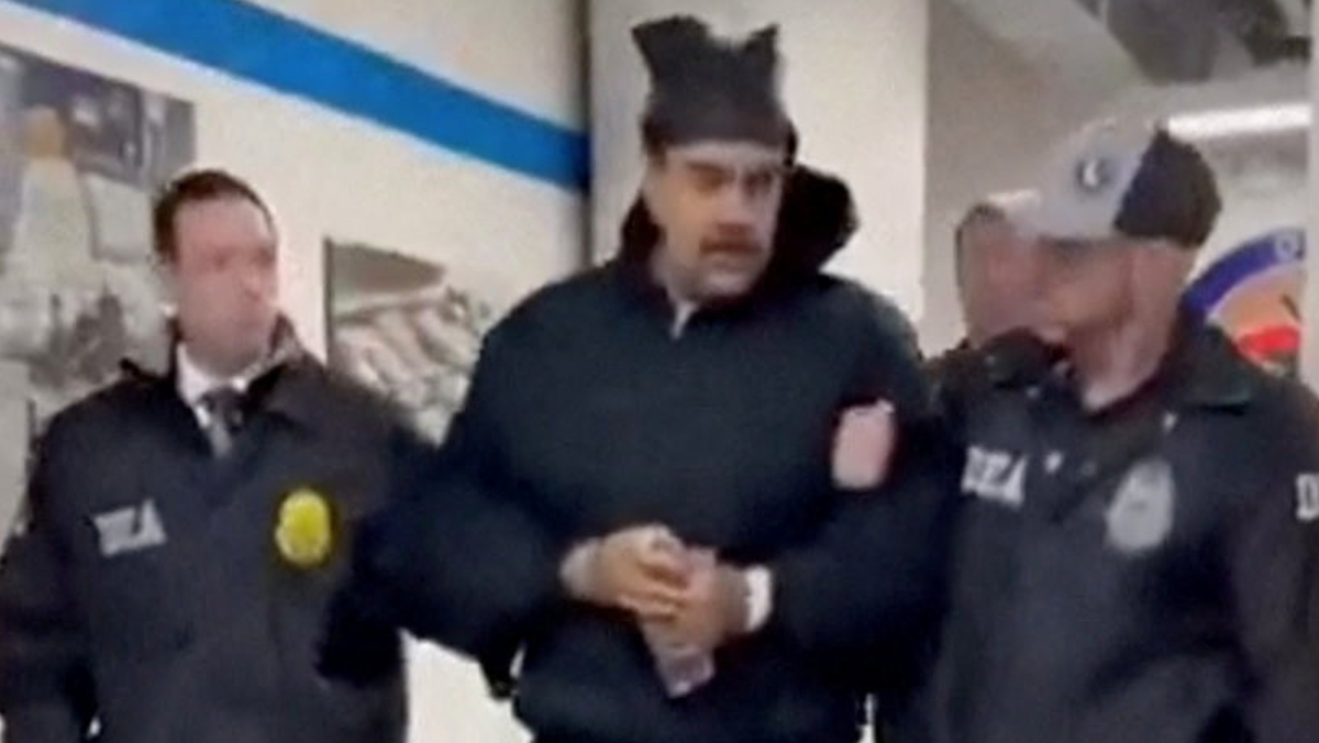 委內瑞拉總統馬杜洛3日凌晨遭美軍抓捕並押回美國後,白宮稍早釋出馬杜洛被聯邦幹員上銬押送的影片,影片中的他身著黑色連身帽走過長廊,白宮帳號更在貼文中直言,這根本就是一場「犯人遊街」(Perp walk)。