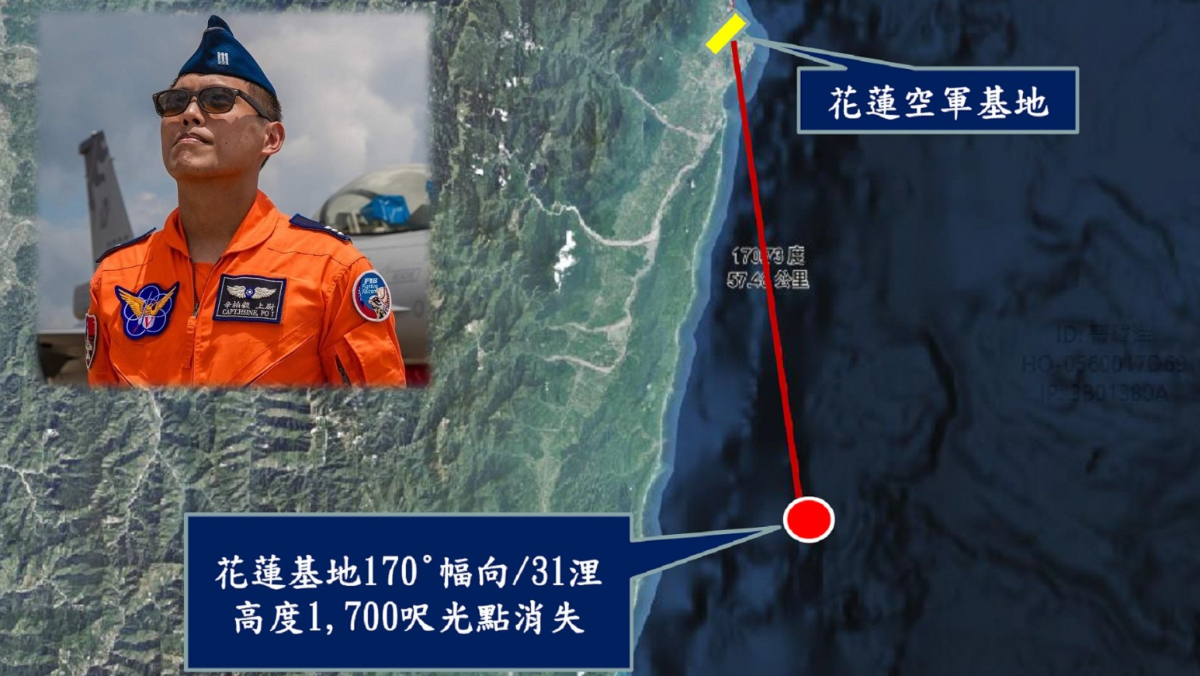花蓮空軍基地一架編號6700的F-16單座戰機,6日晚間在執行夜航任務時,戰機起飛73分鐘後,雷達訊號不明原因發生異常,29歲上尉飛官辛柏毅疑跳傘逃生,搜救行動持續進行。空軍司令部7日公布初步調查報告,還原整個失事前1分鐘完整過程,顯示戰機瞬間從7600呎高度,短短1分鐘內,急速下墜失事。