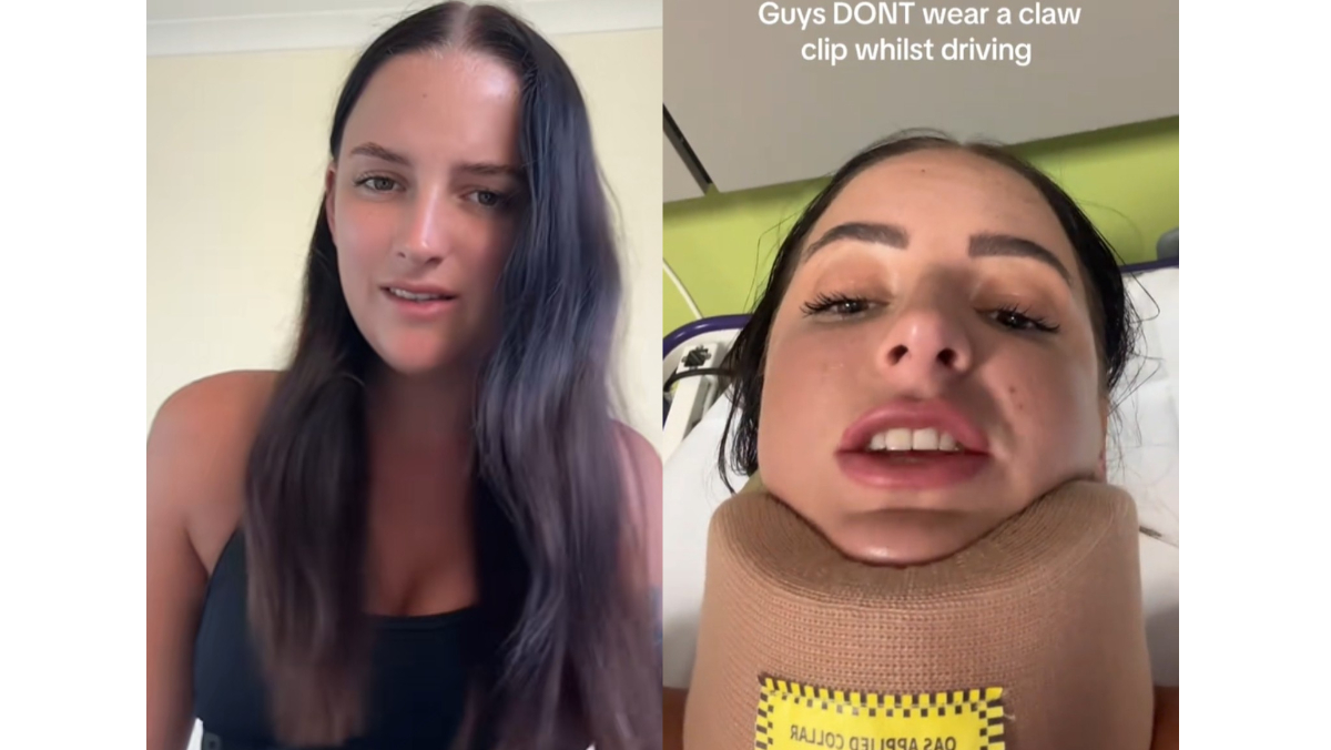 澳洲昆士蘭陽光海岸一名22歲社群創作者Ella Carter,近日在Tik Tok上發布影片分享自己經歷的嚴重車禍,提醒全球駕駛人或乘客注意,開車或搭車時有個常被忽略的風險,就是不要在後腦勺配戴「鯊魚夾」。