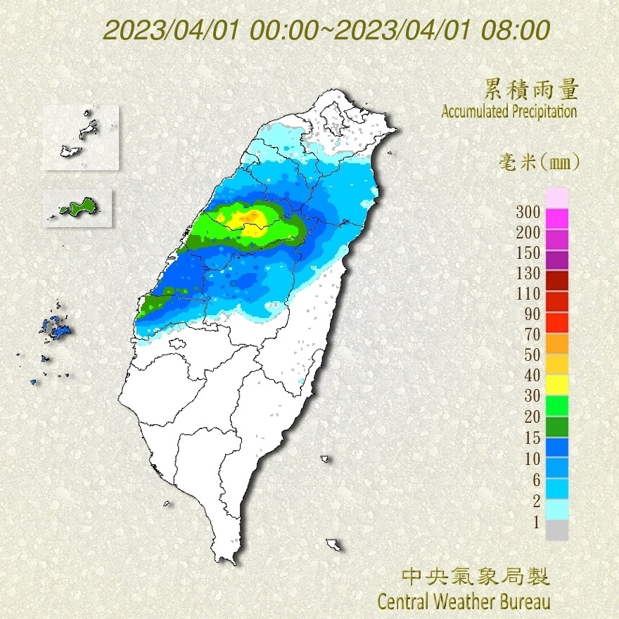 氣象局表示,今(1)日華南東移出來的雲雨區增多,中部以北、東北部地區有陣雨,中部以北地區容易出現局部較大雨勢,東部、東南部地區及金門、馬祖有局部短暫陣雨,南部地區亦有零星短暫陣雨。