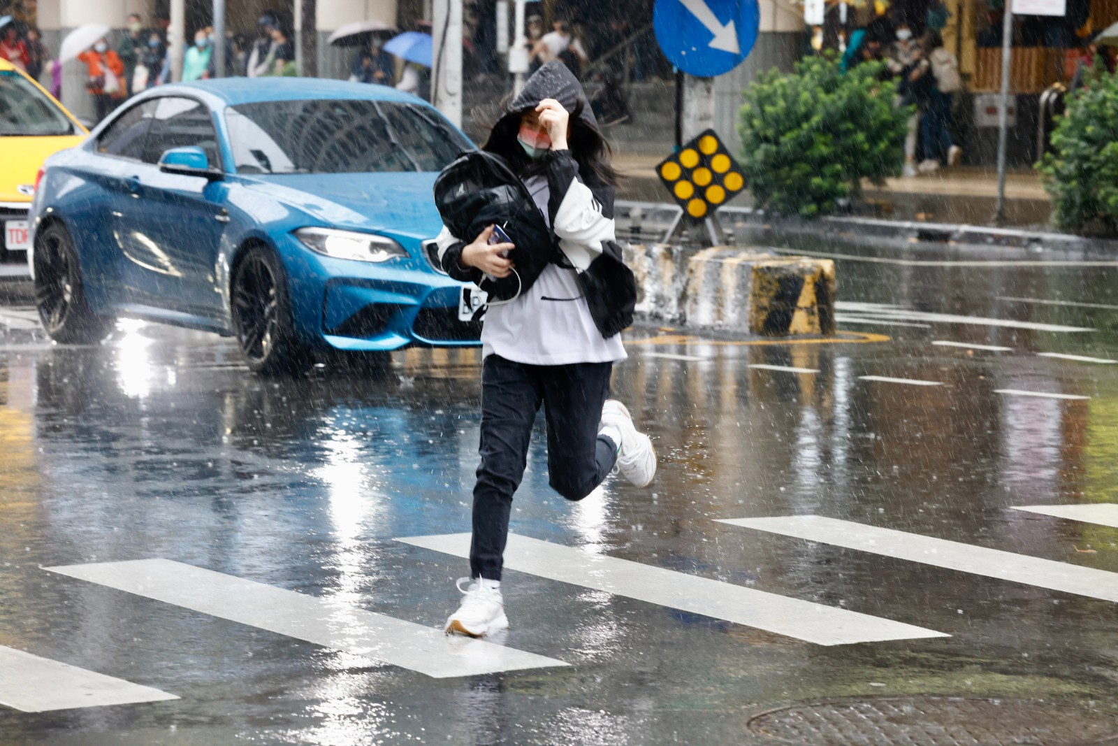 台北市街頭雨勢不小。廖瑞祥攝 新北永和下起傾盆大雨,路上行人相當狼狽。廖瑞祥攝