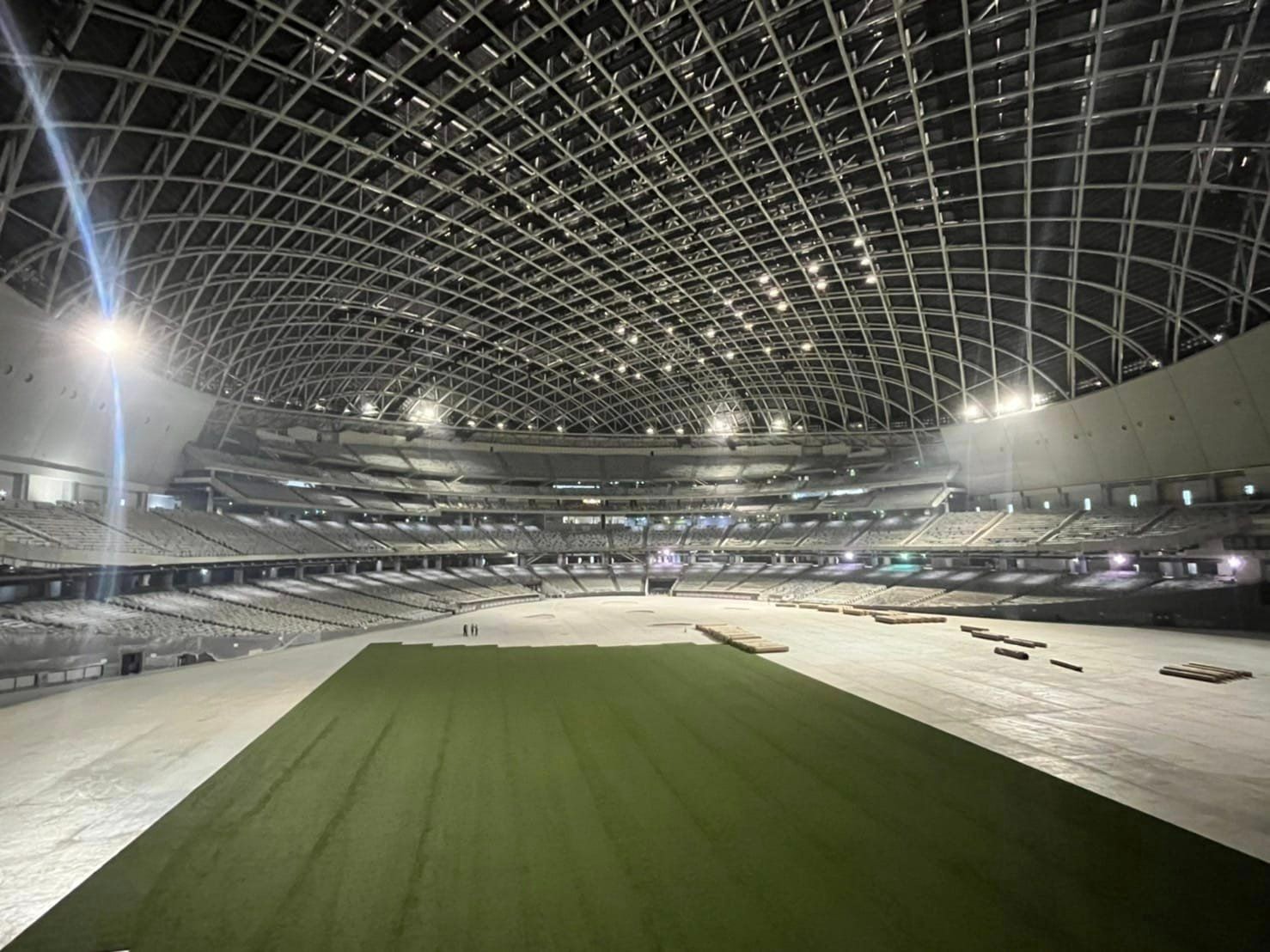 大巨蛋於4月9日開始鋪草皮。翻攝李四川臉書