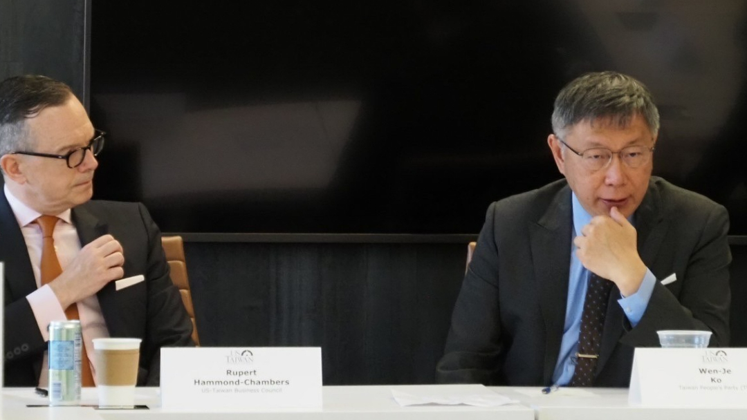 人在華府的柯文哲今天拜訪美台商會,和商界代表對談,闡述民眾黨的經濟政策,並說明若當選總統會如何美台商業關係,之後再前往喬治華盛頓大學艾略特國際事務學院發表演說。