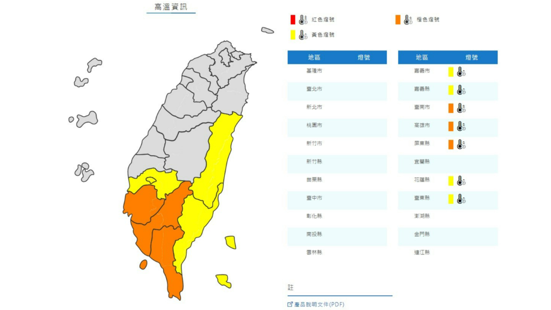 5月4日高溫資訊。翻攝自氣象局官網
