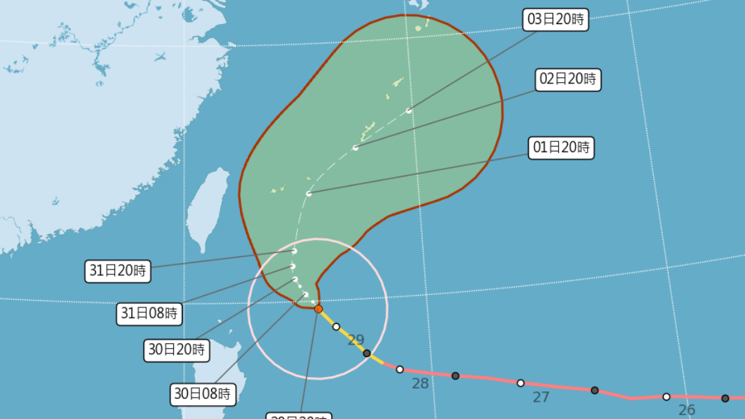 瑪娃颱風最新暴風圈預測圖。取自氣象局