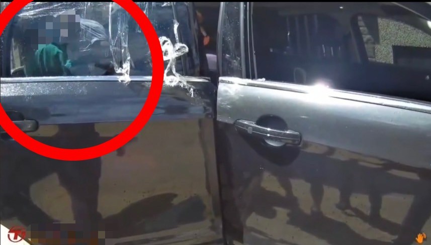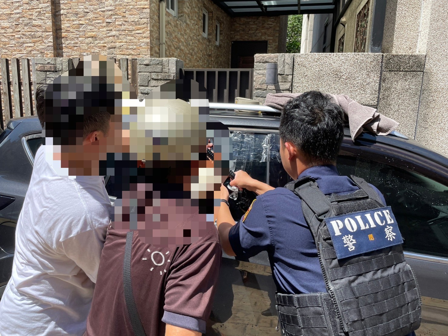 花蓮分局豐川派出所警察使用警棍破窗。花蓮分局提供