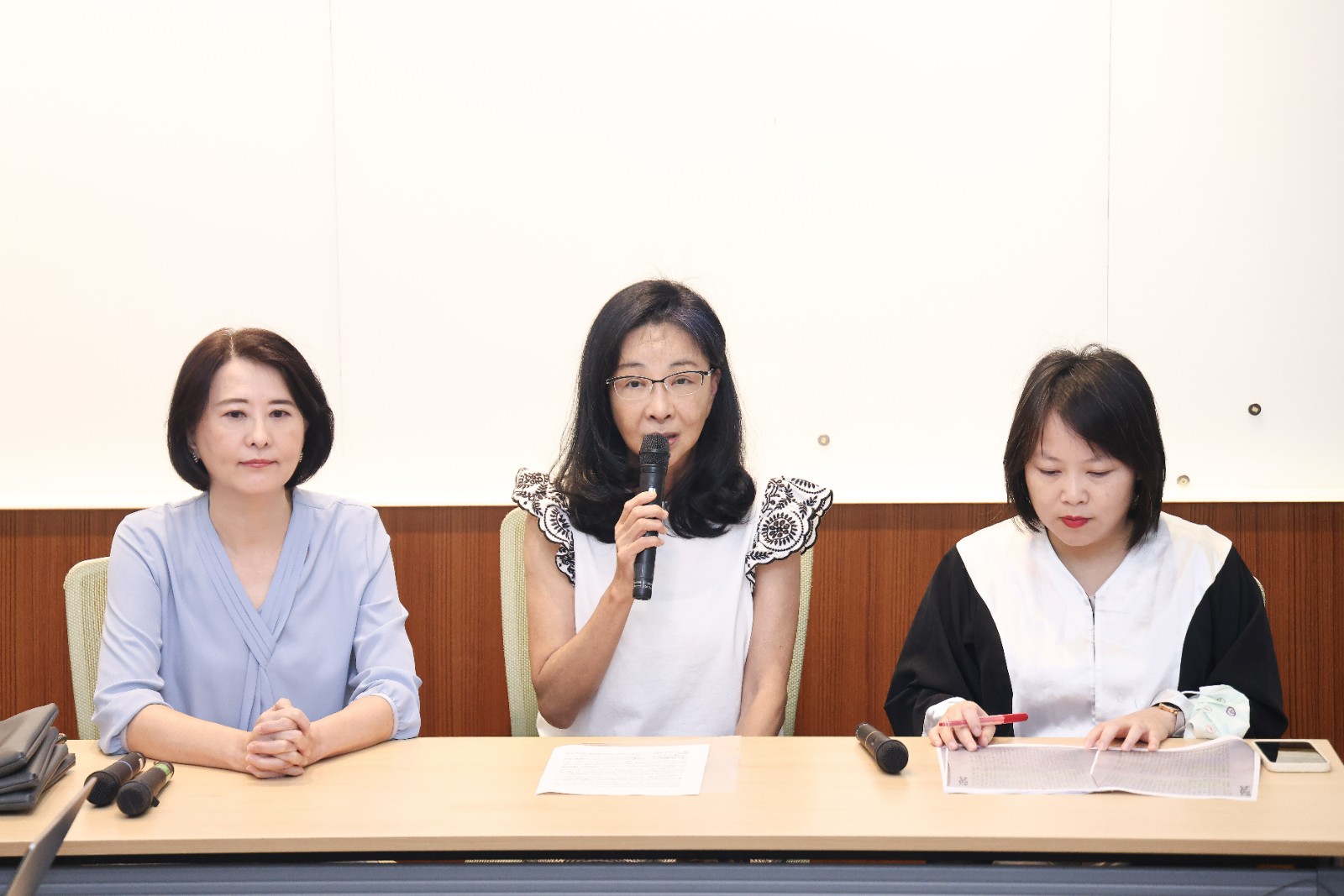 王鴻薇陪同張淑娟針對起訴事件回應記者會。陳品佑攝