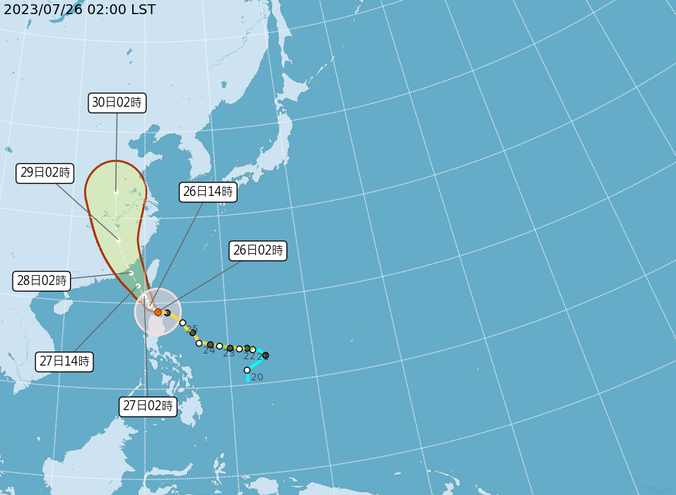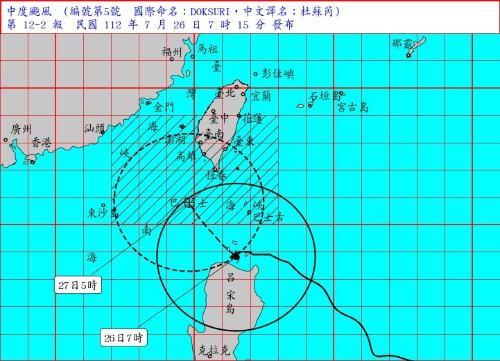 中央氣象局7月26日上ˇ7時15分發布海上陸上颱風警報。中央氣象局