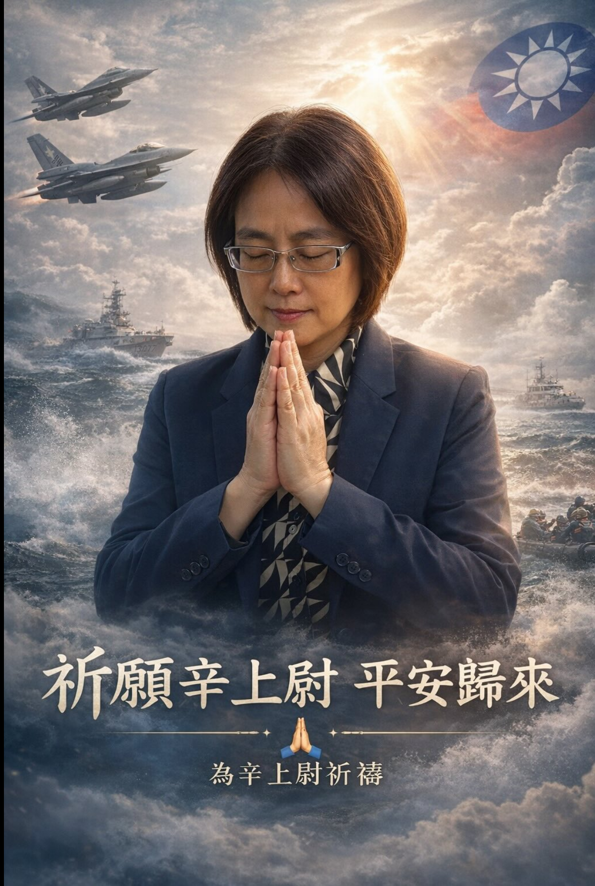 空軍上尉辛柏毅6日晚間執行例行夜間訓練任務時,在花蓮縣豐濱鄉以東海面失事,至今仍下落不明,搜救人員獲報後持續全力搜救,各界也紛紛為他集氣,希望他平安歸來,國民黨立委林倩綺也在社群曬出用AI製作的集氣圖,沒想到圖片中她不但自己「站C位」,圖片內文字還有錯字,引來網友怒轟「妳是立委不是師姐」。