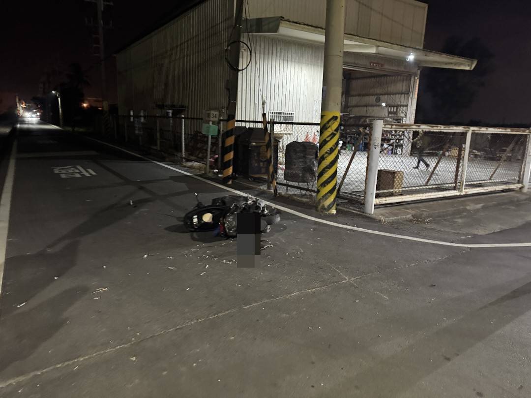 機車被撞飛後零件四散橫躺在路口。讀者提供