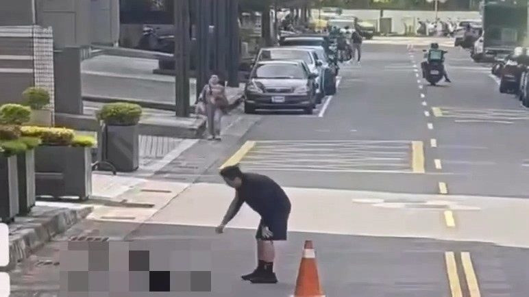 蔡女倒地後,有路人上前關心,宿男則跑到一旁抽菸。讀者提供
